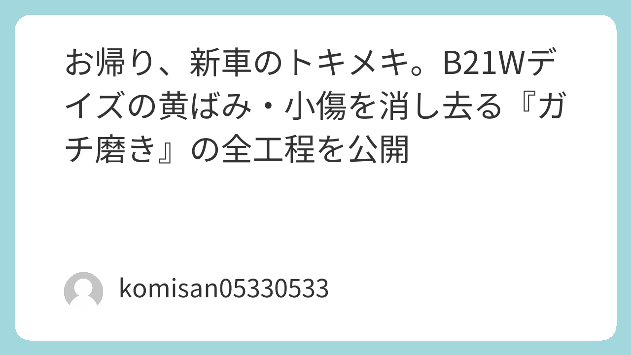 お帰り、新車のトキメキ。B21Wデイズの黄ばみ・小傷を消し去る『ガチ磨き』の全工程を公開