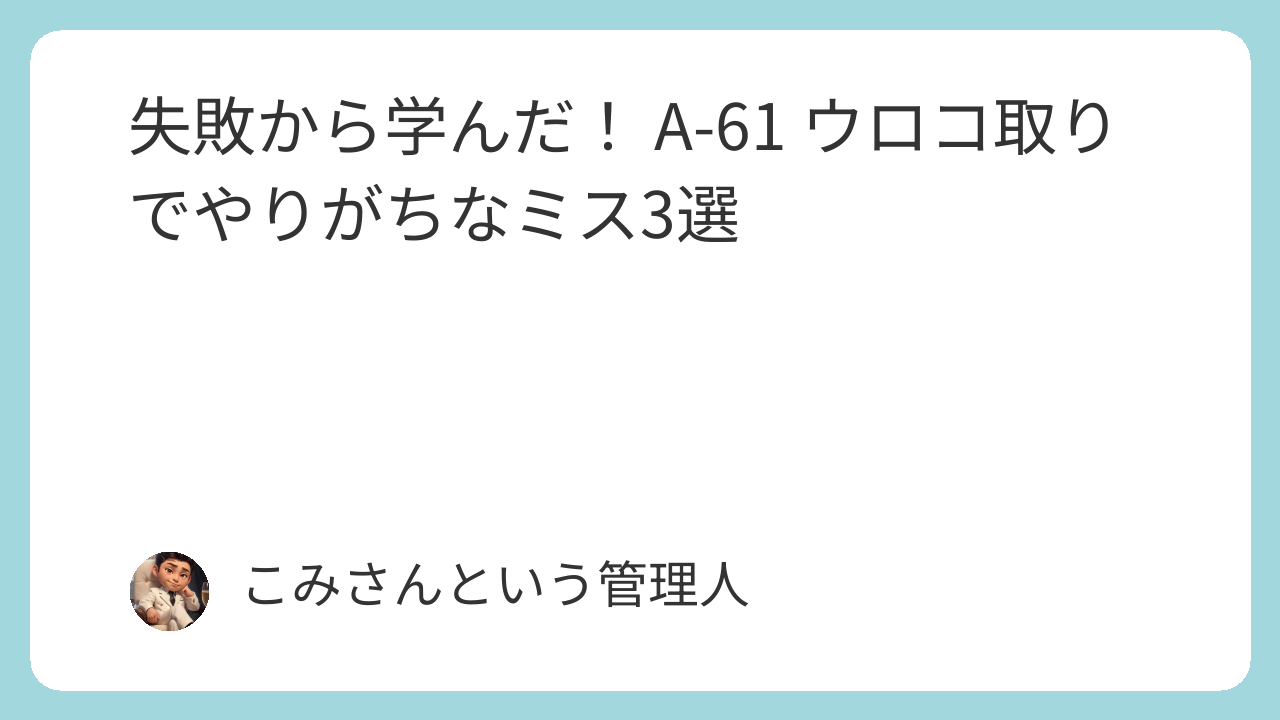 失敗から学んだ! A-61 ウロコ取りでやりがちなミス3選