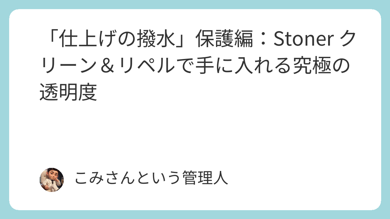 「仕上げの撥水」保護編:Stoner クリーン&リペルで手に入れる究極の透明度