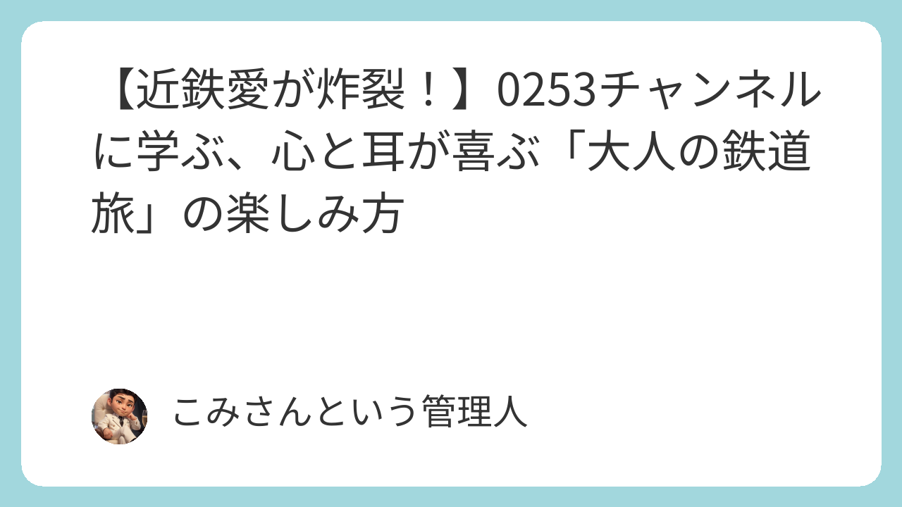 いかがでしたか? 0253チャンネルさんの動画を見ていると、鉄道は単なる移動手段ではなく、人生をちょっと豊かにしてくれる最高の趣味なんだなと再確認させてくれます。